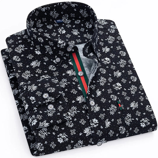 Men's Stylish Floral Style 100% Cotton Long Sleeve Oxford Shirts